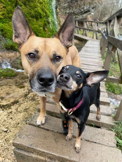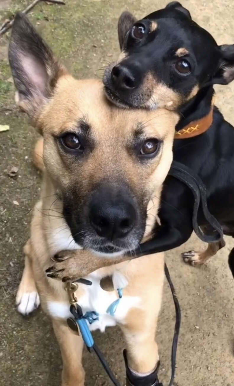 @verpinscht Mojo loves to take care of his handicapped brother during our walk. wait for then hugging ❤️ #fy #fürdich #siblings #minpin #schäferhund #shepherd ♬ Surrender – Natalie Taylor